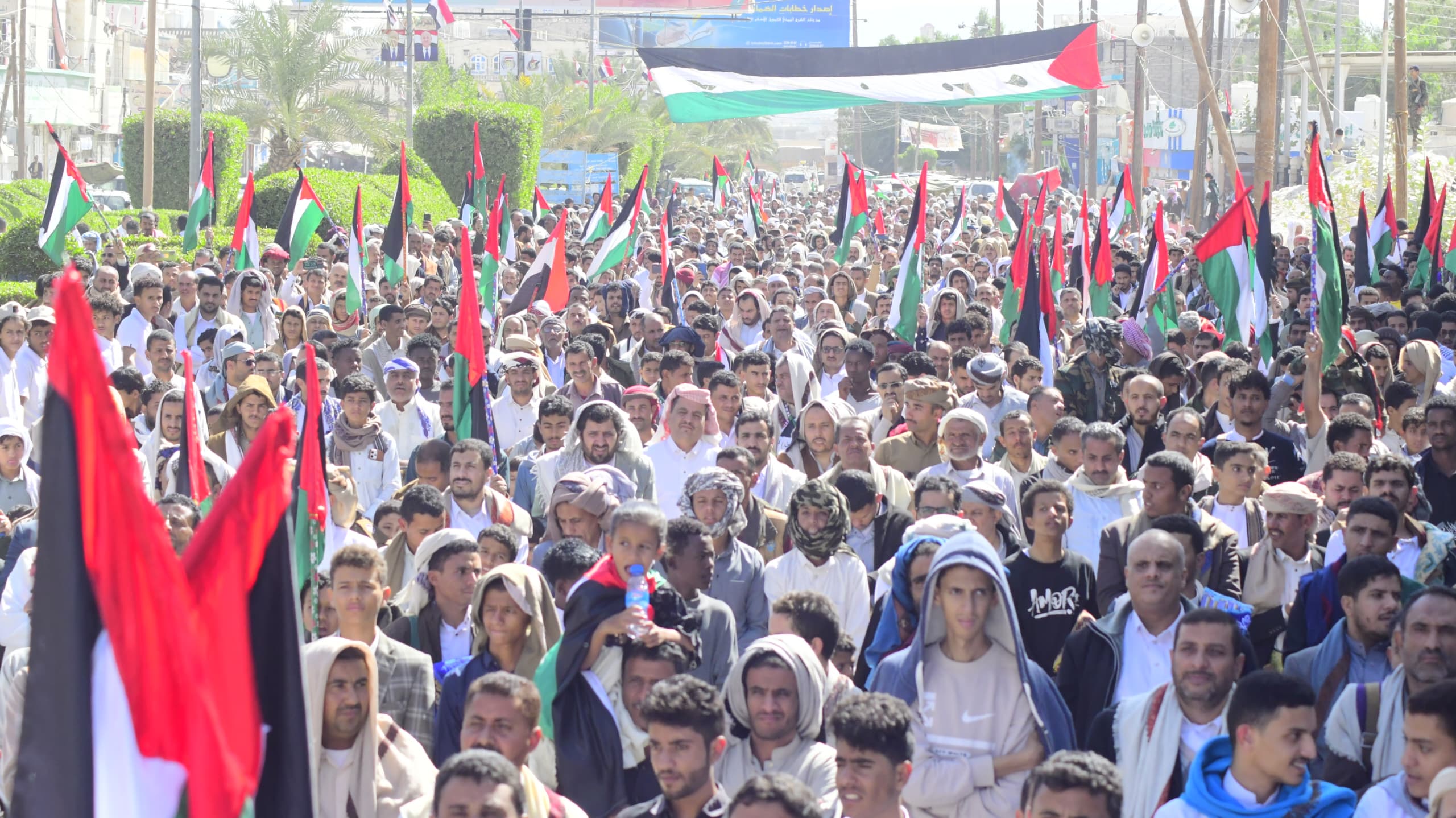 وباركت الحشود، عمليات جماعة الحوثي التي تستهدف عمق كيان العدو الصهيوني والتي أصابته بالذعر والهلع، نصرة للشعب الفلسطيني وغزة ودفاعاً عن اليمن.