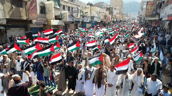 تظاهر آلاف اليمنيين، اليوم الجمعة، في عدد من المحافظات، تنديدا بجرائم الاحتلال الإسرائيلي في قطاع غزة، وتضامنا مع الشعب الفلسطيني الذي يتعرض للإبادة منذ أكثر من عام.