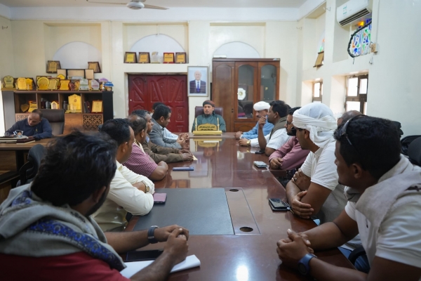 [ محافظ سقطرى رأفت الثقلي في اجتماع بموظفي مطار سقطرى ]