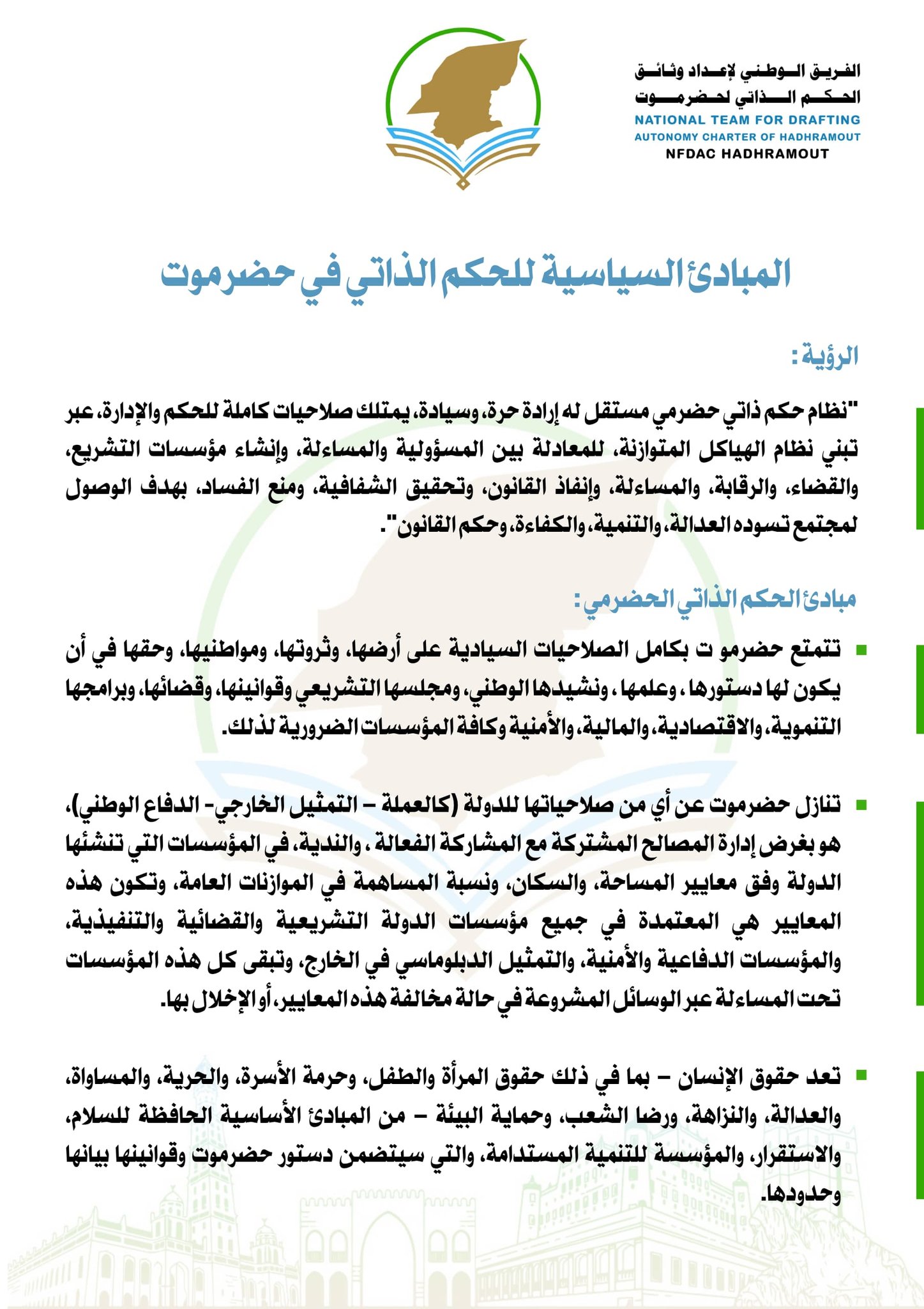 نص الوثيقة كاملة (المبادئ السياسية للحكم الذاتي في حضرموت)