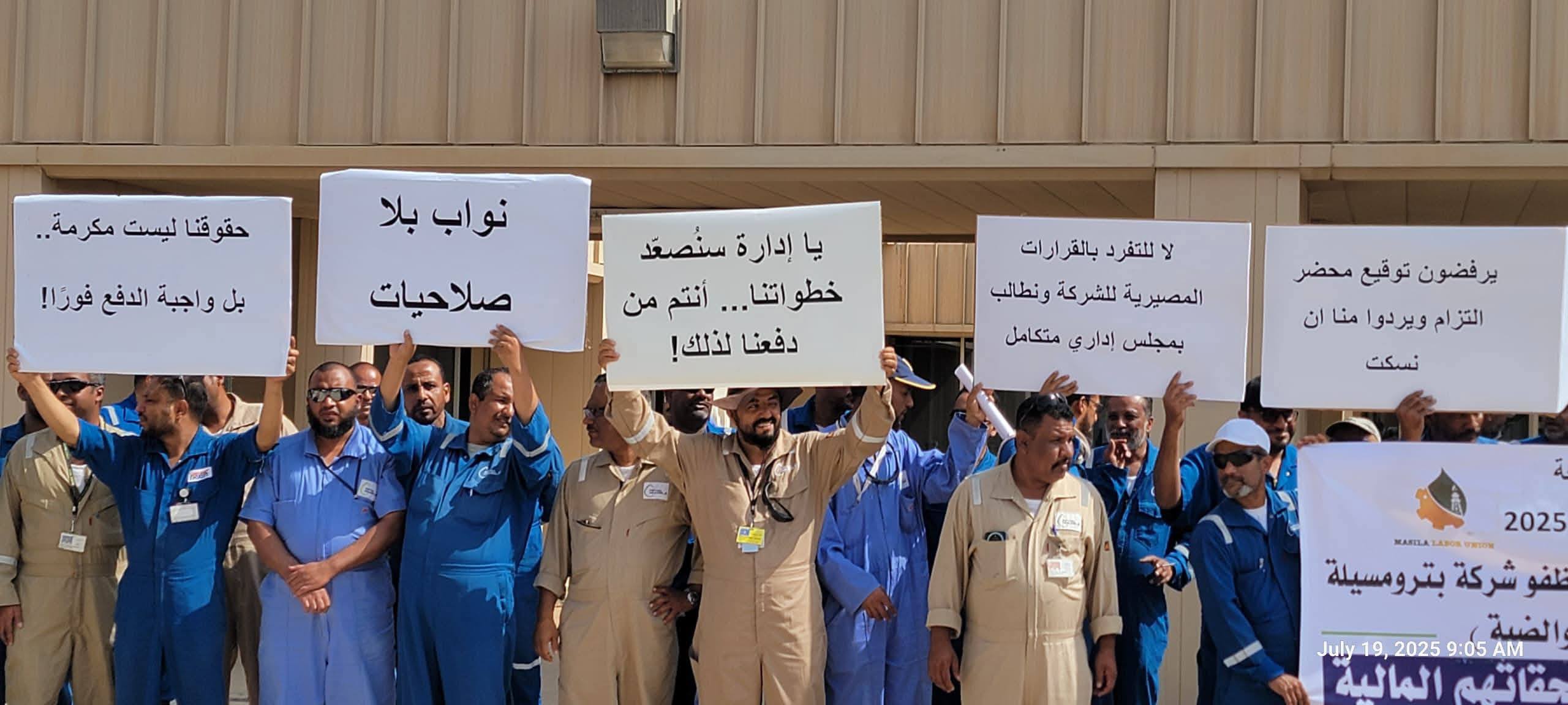 ورفع عمال وموظفو بترومسيلة في الحقل والميناء، لافتات تطالب بتحسين ظروف العمل، وزيادة الرواتب بما يتناسب مع الأعباء المعيشية، والاستجابة الفورية للمطالب العمالية العالقة منذ أشهر.