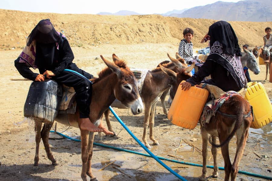 بحسب تقديرات أممية يواجه 15 مليون شخص في اليمن، من بينهم 9.6 مليون امرأة وفتاة صعوبات جمة في الحصول على كميات كافية من المياه النظيفة، وذلك بسبب تراجع هطول الأمطار ونقص التمويل اللازم لتوفيرها، ما ينذر بكارثة إنسانية.