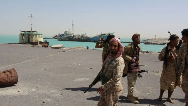 [ جنود من الجيش الوطني في ميناء المخا بعد تحريره ]