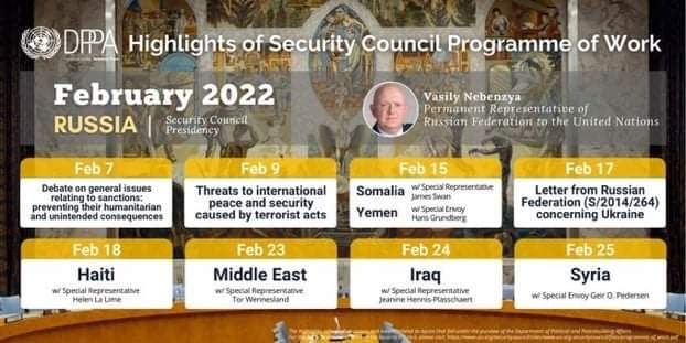 وقالت مصادر دبلوماسية إن مجلس الأمن سيعقد مشاورات حول اليمن في الخامس عشر من شهر فبراير الحالي، بينما سترأس المجلس لهذا الشهر روسيا الاتحادية.