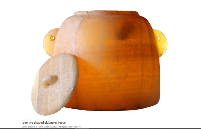 وقالت إريكسون "لكن اتضح أنه قبل سنوات عديدة، نُشر منشور عن هذا النوع من الأواني في اليمن. تُسمى هذه الأواني "على شكل خلية نحل" لأن قاعدتها مسطحة. يمكن أن تكون أكبر أو أصغر. قد يكون المرمر رخاميًا نوعًا ما أو شفافًا نوعًا ما، لكن لها دائمًا سمات متشابهة يمكنك تمييزها. كان هذا الوعاء ينقصه الجزء العلوي، لكنني استطعت تمييزه من القاعدة فقط".