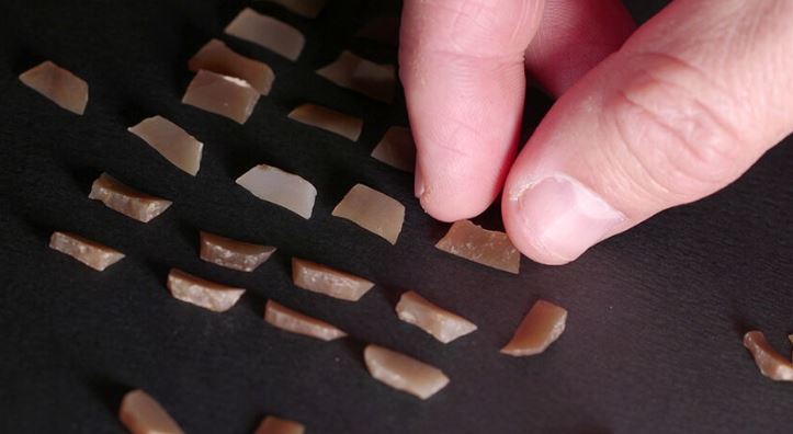 تضيف "تبدو القطع الحجرية الصغيرة أشبه برقاقة صغيرة. نُسميها رؤوس أسهم، لكنها ليست من النوع الذي يحتوي على رأس مدبب. إنها غير حادة نوعًا ما من جانب واحد. كانت تُثبّت على عمود السهم. من المحتمل أن يكون عليها نوع من السم أو شيء ما لتعطيل الأرانب أو الطرائد الصغيرة أو إبطائها. كان هناك أكثر من 40 رأس سهم صوان صغير".