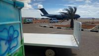 السعودية تدفع بقاطرات إلى مطار الغيضة تحمل عشرات الأطقم العسكرية