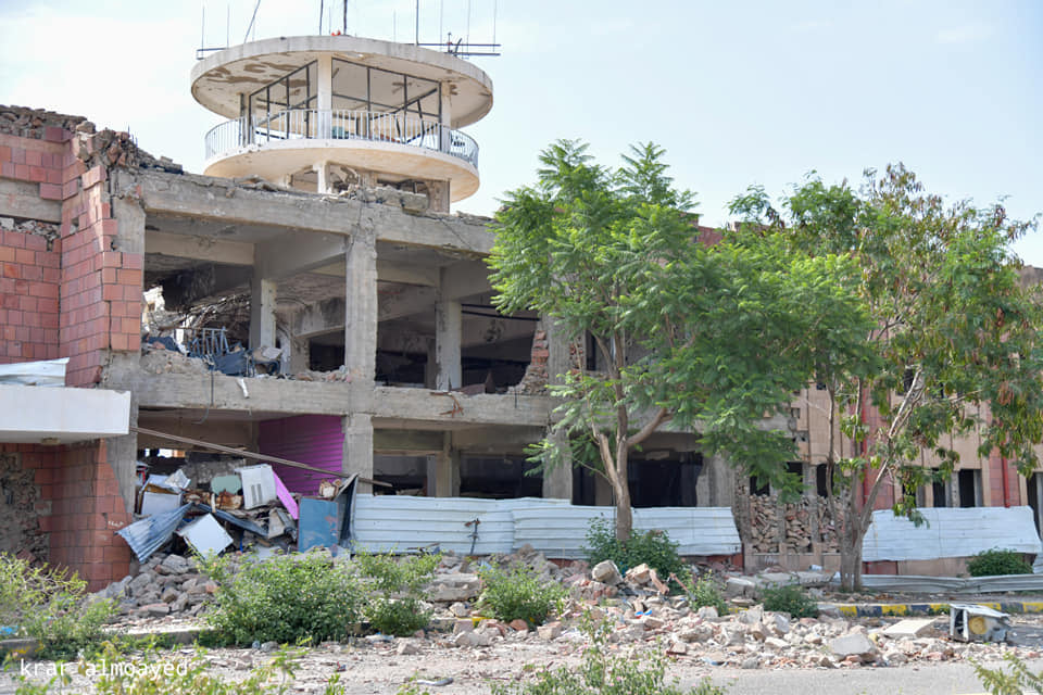 صور تظهر حجم الدمار الذي لحق بمطار تعز جراء الحرب