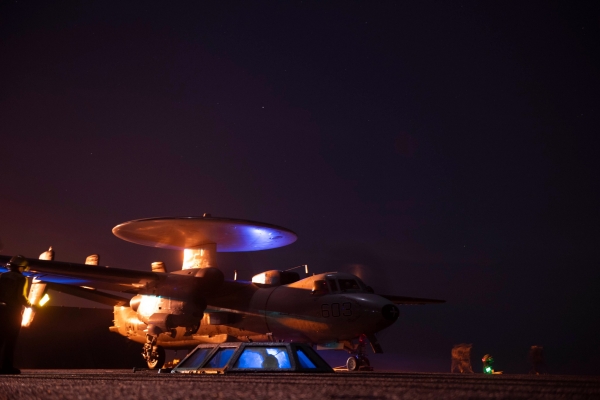 [ طائرة تابعة للجيش الأمريكي خلال اقلاعها لتنفيذ هجمات باليمن - الجيش الأمريكي ]