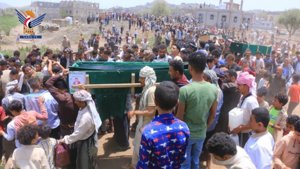 [ جانب من جنازة أطفال العرسوم ـ وكالة سبأ التابعة للحوثيين ]