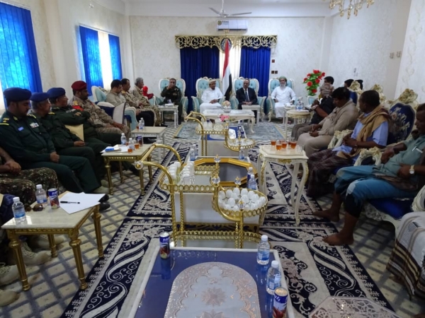 من جانبه، رحب الأمين العام للمجلس المحلي بنائب رئيس الوزراء وزير الداخلية، مستعرضاً طبيعة الأوضاع بصورة عامة وتكامل العمل بين الوحدات الأمنية والعسكرية بالتعاون والتنسيق مع التحالف العربي، مطالباً بتقديم المزيد من الدعم والإمكانيات للقوات العسكرية والأمنية.