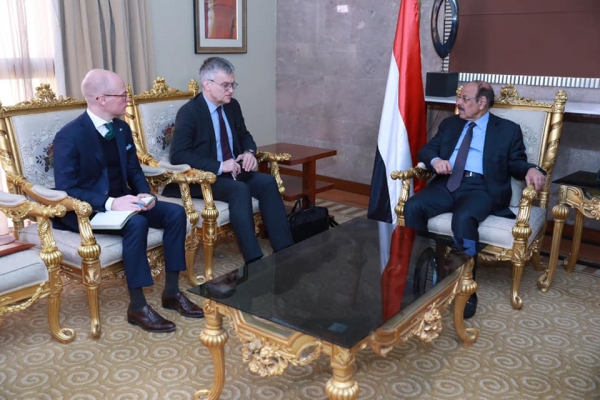 وجدد المبعوث السويدي خلال اللقاء التأكيد على دعم بلاده لأمن واستقرار اليمن ومضاعفة جهودها في الجانب الإغاثي والإنساني بما يسهم في تخفيف الأزمة الإنسانية.