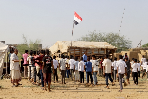 [ أطفال يمنيين يتلقون تعليمهم في خيام بمحافظة حجة بعد أن دمرت الحرب مدارسهم - الموقع بوست ]