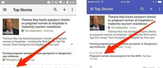 وتظهر العلامات في نص رمادي صغير فوق روابط المقال، جوجل نفسها لا تصدر الأحكام ولا تخبرك بخلاصة المقال في نتائج البحث. بل هي مجرد علامة تقول "اقرأني لتعرف الحقيقة". ولكنها لا تزال طريقة لطيفة للتأكد من أن القراء يكونون رأياً مستنداً إلى حقائق على الأقل وليس على خيال.