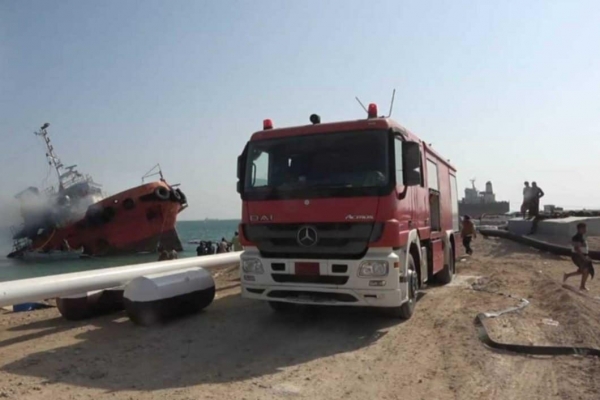 [ أحد اللنشات الذي تم إستهدافهم من قبل الطيران الاسرائيلي فجر أمس بالحديدة. ]