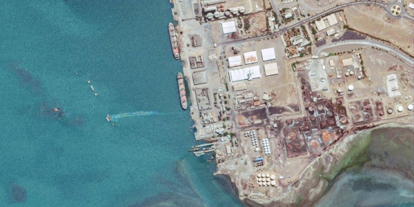 [ صور للأقمار الصناعية تظهر الضربات الاسرائيلية على ميناء رأس عيسى بالحديدة ]