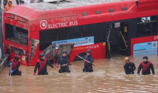 ويُفيد تقرير بأن كمية الأمطار التي هطلت على جنوب كوريا الجنوبية، يوم السبت، بلغت حوالي 300 ملم.